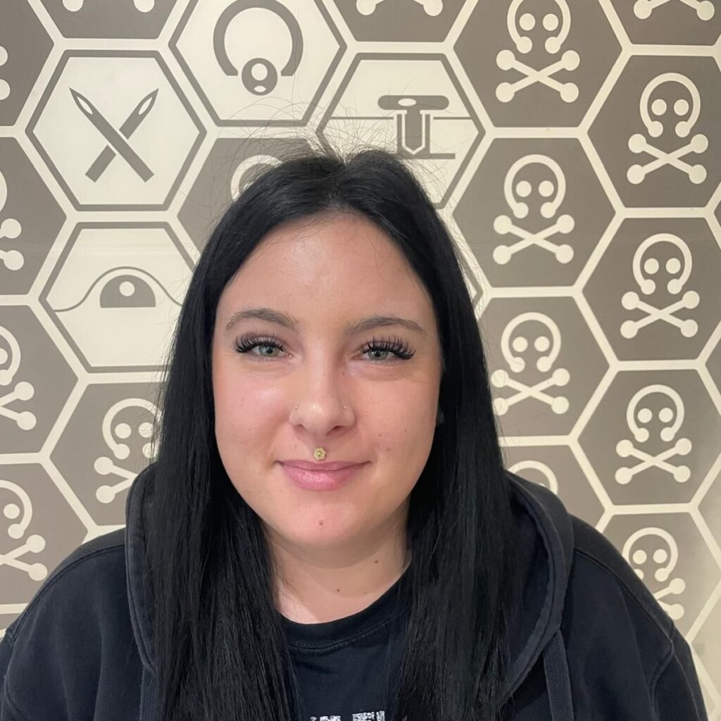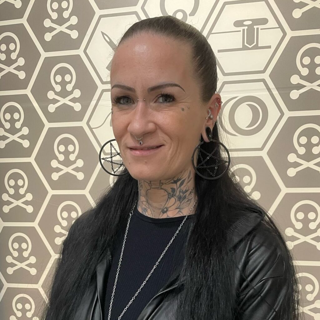Sie kümmert sich um alle deine Fragen und Sorgen, wenn es um neuen Piercingschmuck geht oder einfach um einen Termin. Zusätzlich ist sie auch für die Warenwirtschaft und die Bestellung des Piercingschmucks zuständig.