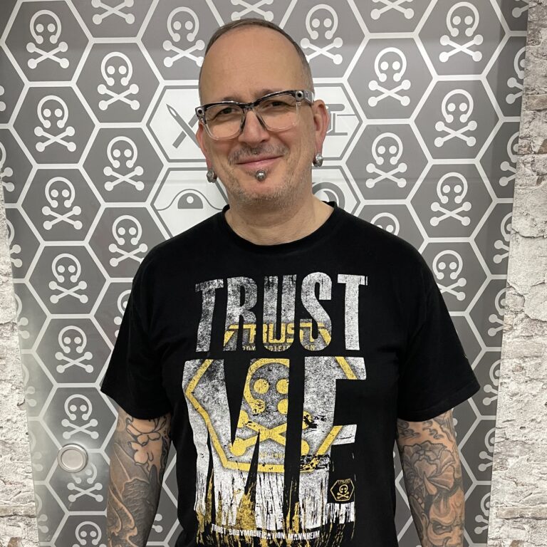 Hieraus hat sich über die Zeit ein großes Interesse entwickelt und irgendwann kam der Schritt zum Piercer. Im TRUST kann er nur mit voller Motivation und viel Energie seine Leidenschaft weiter ausbauen. Mit seiner entspannten und ruhigen Art begeistert er die Kunden und seine Kolleg:innen.