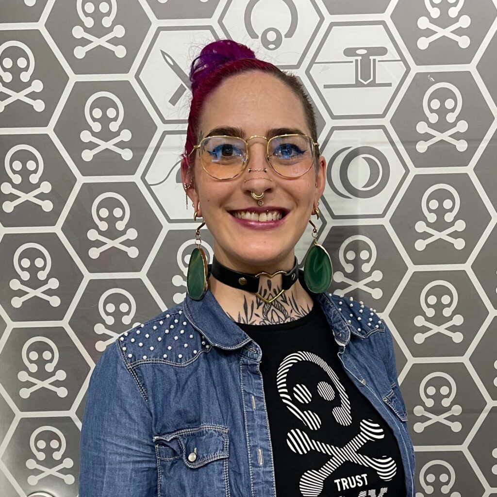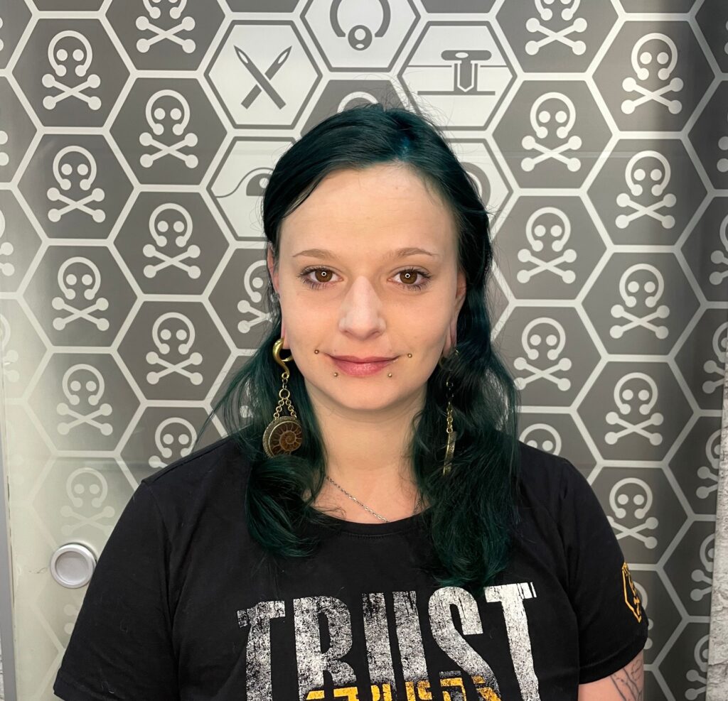 Franzi arbeitet seit 2013 als Piercerin. Ihre Liebe zum Detail und Hingabe zur Perfektion lassen sie erst so richtig aufblühen. Gerade für ihr Auge für Symmetrie und ein rundes Gesamtbild bei Projekt-Piercings ist sie bei ihrer Stammkundschaft bekannt.