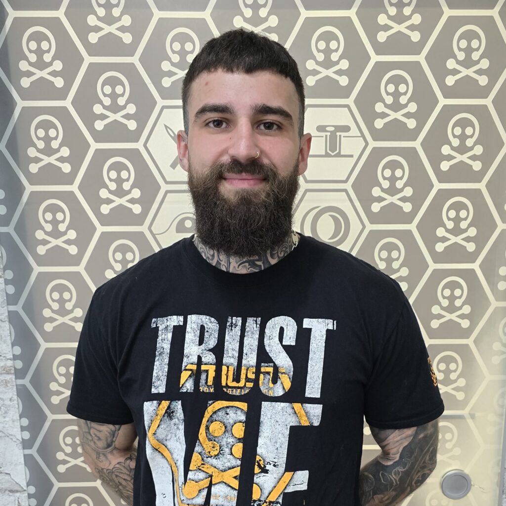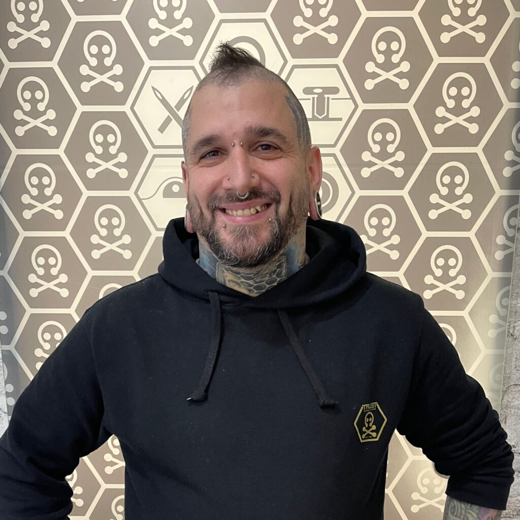 Angelo ist ein erfahrener Piercer aus dem Hunsrück und ist seit Anfang 2022 bei uns. Sein humorvolles Wesen und Einfühlungsvermögen bereichern das Team tagtäglich.